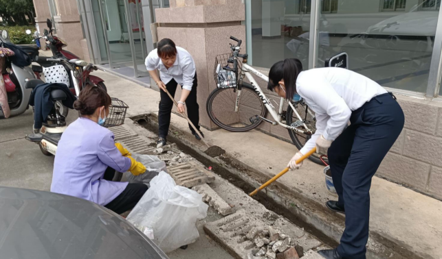 清理办公北楼水沟