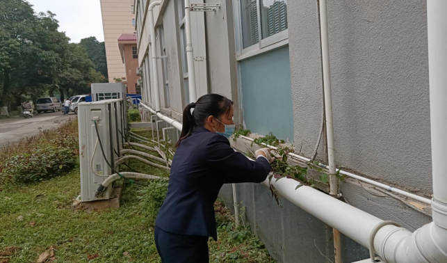清理实训楼楼宇外围杂草