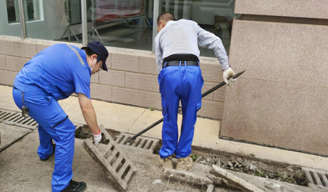 清理动科院楼宇外围排水设施