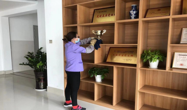 本周对校办楼、君武馆、新东园勤恳楼(后勤)、财务处、办公楼、大学生活动中心、保卫处等办公楼宇进行日常卫生保洁等服务工作。