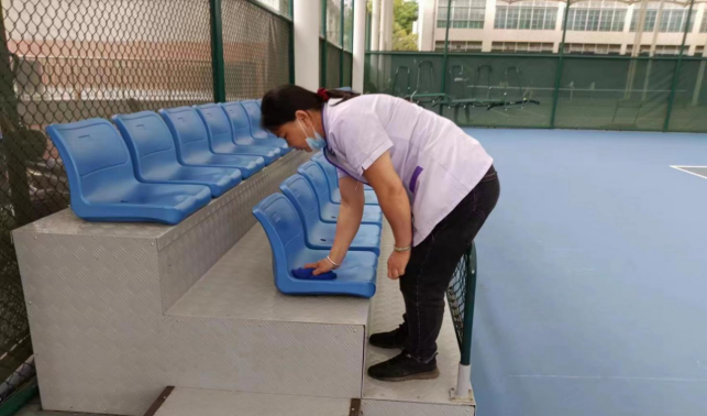 本周对东体育馆、网球中心、体育学院进行日常卫生保洁工作。