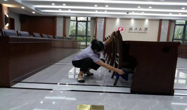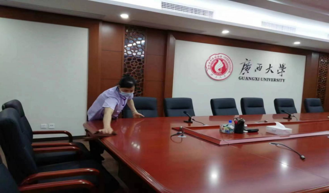 对校办楼、君武馆、新东园勤恳楼(后勤)、财务处、办公楼、大学生活动中心、保卫处等办公楼宇进行日常卫生保洁等服务工作。