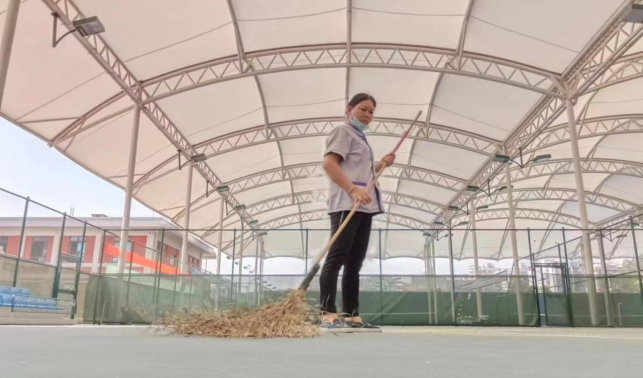 对东体育馆、网球中心、体育学院进行日常卫生保洁工作。