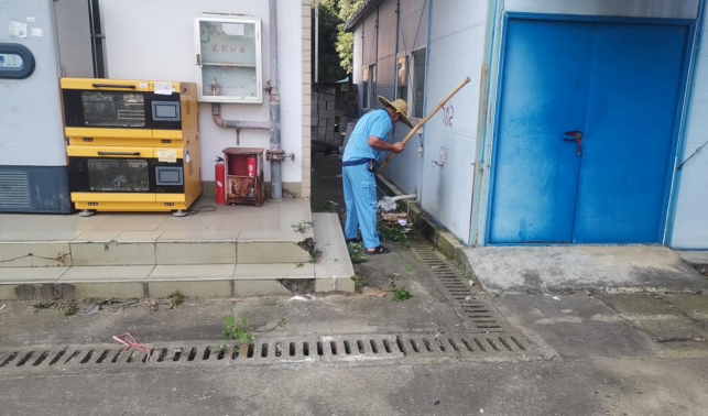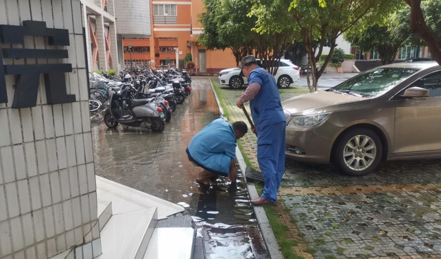 清理环境学院楼宇外围排水设施