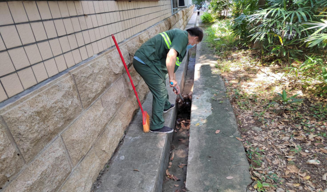 清理医学院楼宇外围排水设施