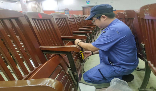 维修大礼堂座椅扶手