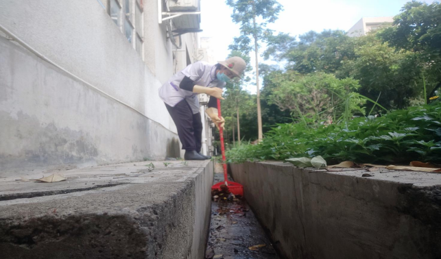 对语言中心、二教、三教、六教、十教、十一教、研究生院和行健学院一教、二教、四教共11栋教学楼宇进行日常卫生保洁服务工作,本周清理公共楼宇排水设施37次,清理公共楼宇天台30处。