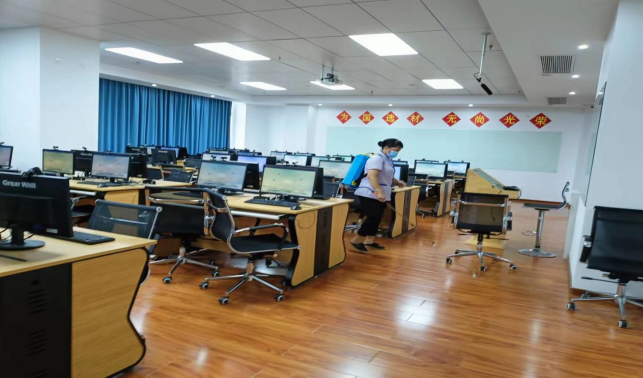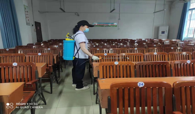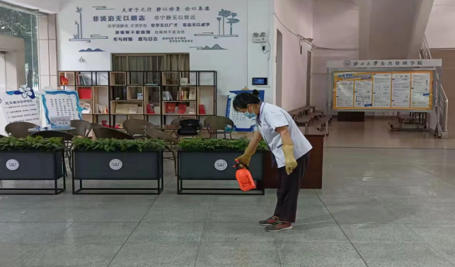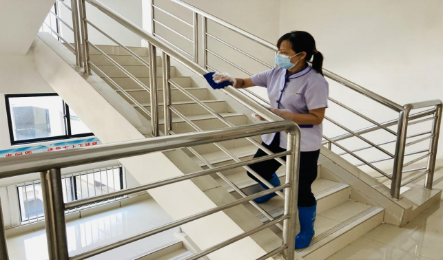 对公共教学楼宇的楼梯、走廊、门把手、课桌椅、电脑键盘、鼠标、水龙头、楼梯扶手、电梯间及按钮等高频接触表面进行重点杀菌消毒965次。