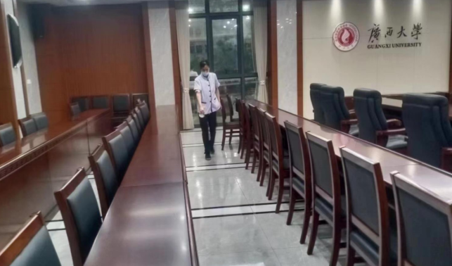 对校办楼、君武馆、新东园勤恳楼(后勤)、财务处、办公楼、大学生活动中心、保卫处等办公楼宇进行日常卫生保洁等服务工作。