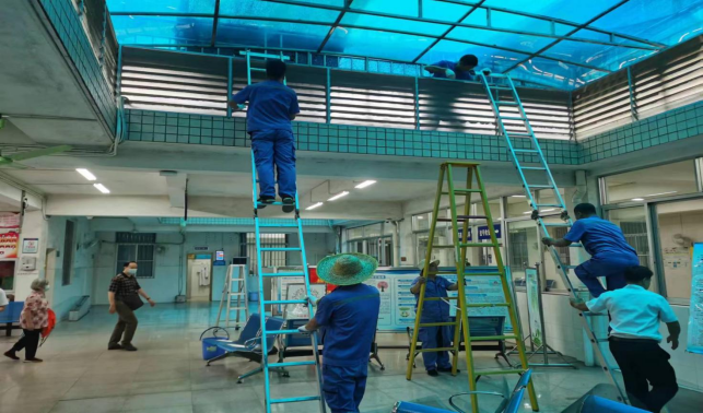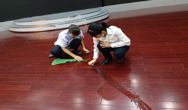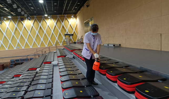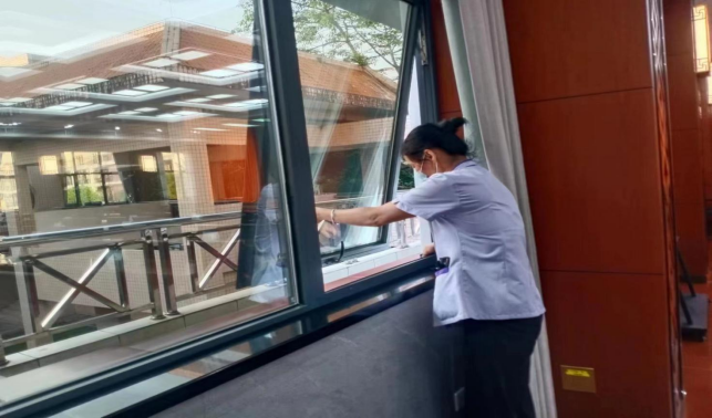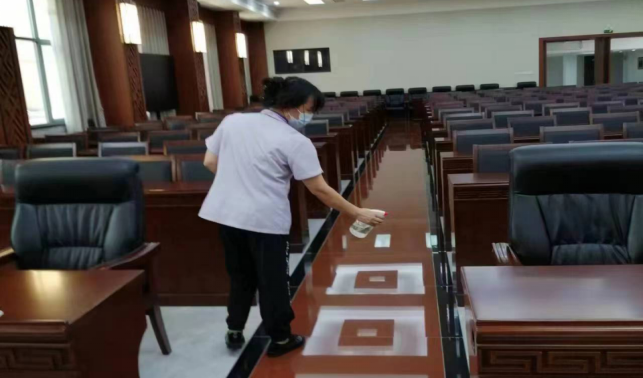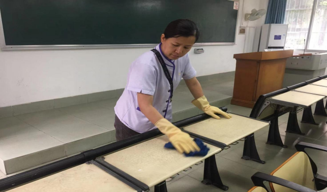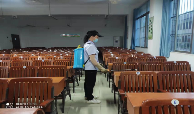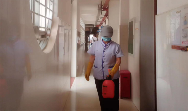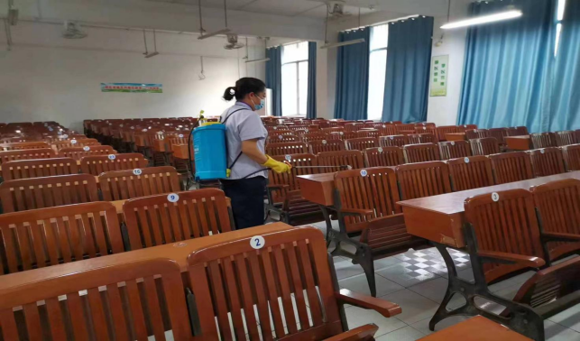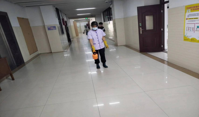 本周对公共教学楼宇的楼梯、走廊、门把手、课桌椅、电脑键盘、鼠标、水龙头、楼梯扶手、电梯间及按钮等高频接触表面进行重点杀菌消毒963次。