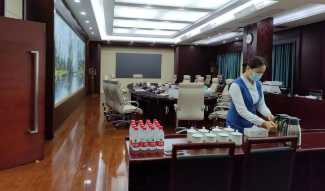 本周做好会场布置、会前、会后保洁及会务各项服务共计30场,其中重要接待20场。