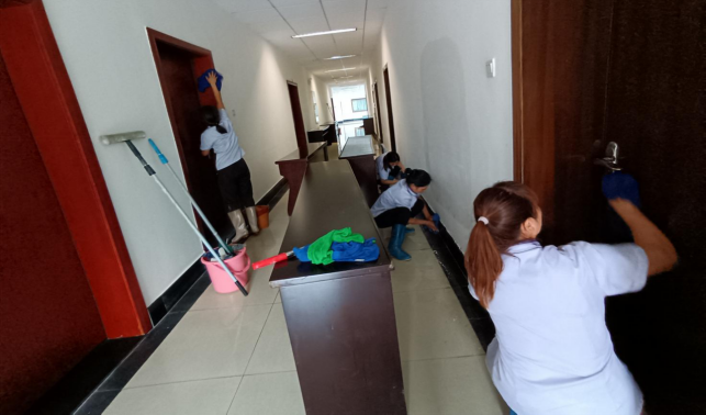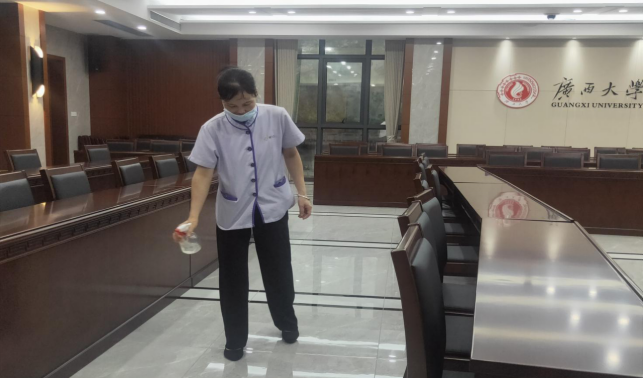 本周对校办楼、君武馆、新东园勤恳楼(后勤)、财务处、办公楼、大学生活动中心、保卫处等办公楼宇进行日常卫生保洁等服务工作。
