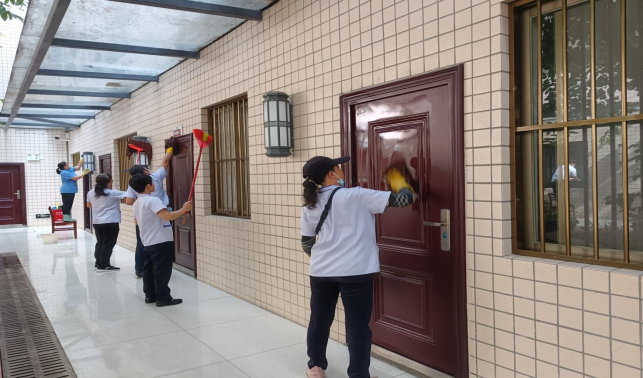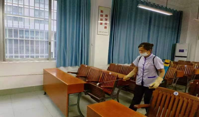 本周对公共教学楼宇的楼梯、走廊、门把手、课桌椅、电脑键盘、鼠标、水龙头、楼梯扶手、电梯间及按钮等高频接触表面进行重点杀菌消毒837次。