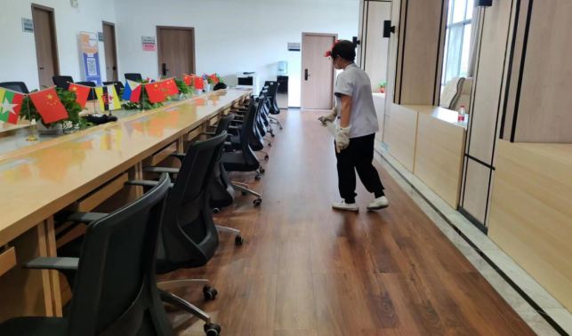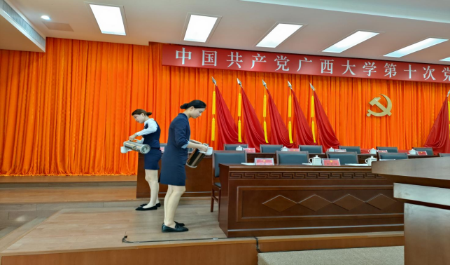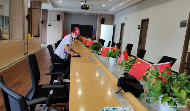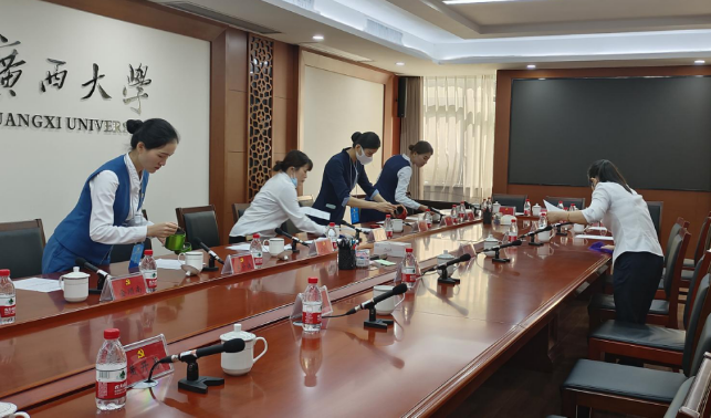 本周会议共计45场,其中重要会议及接待34场,做好会场布置、会前会后保洁及会务各项服务。