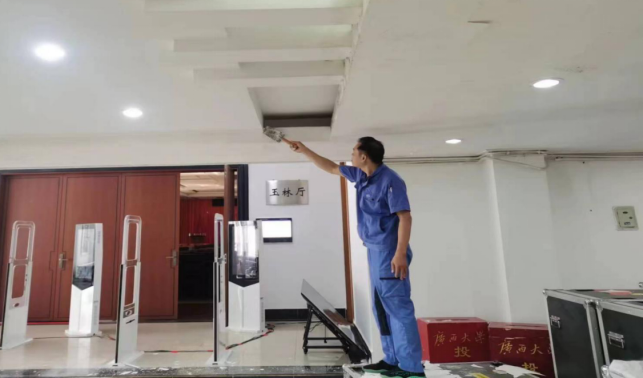 清理君武馆玉林厅台阶吊顶