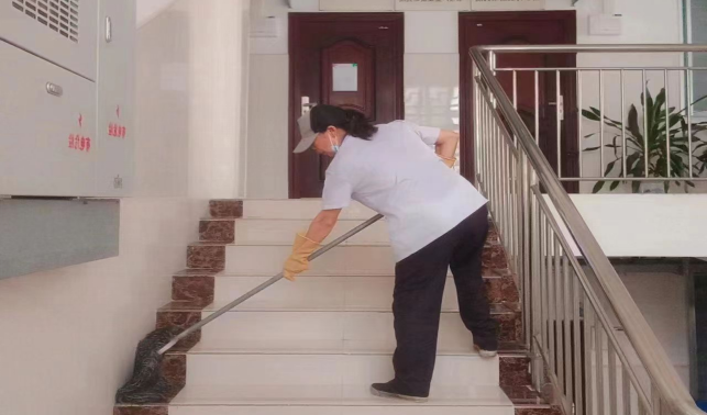 清洁综合楼台阶污垢