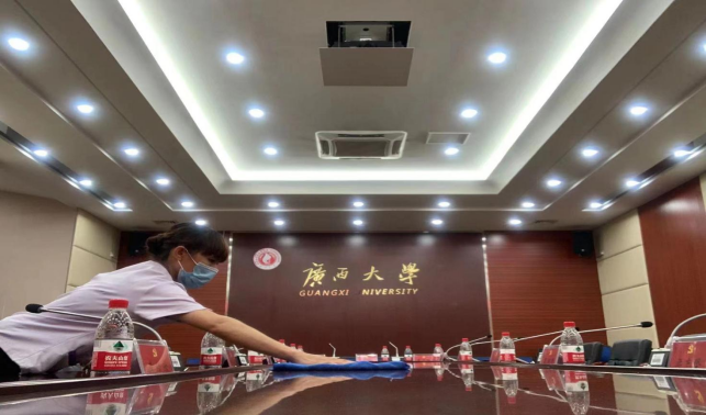 对校办楼、君武馆、新东园勤恳楼(后勤)、财务处、办公楼、大学生活动中心、保卫处等办公楼宇进行日常卫生保洁等服务工作,清理公共楼宇排水设施32次,清理公共楼宇天台33处。