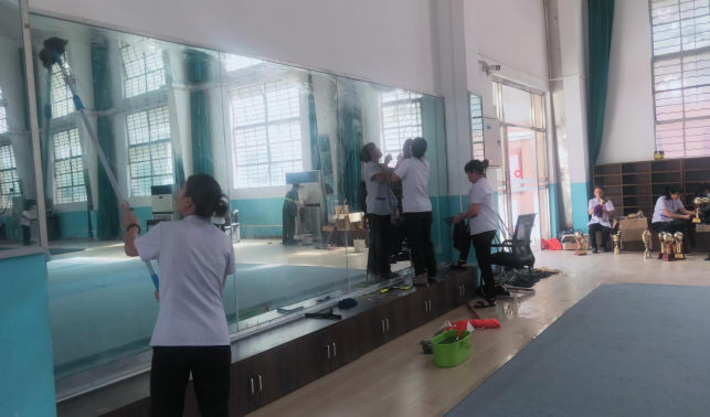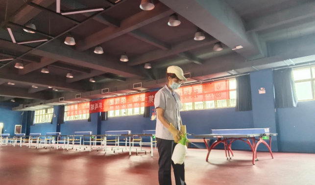 对东体育馆、网球中心、体育学院进行日常卫生保洁工作。