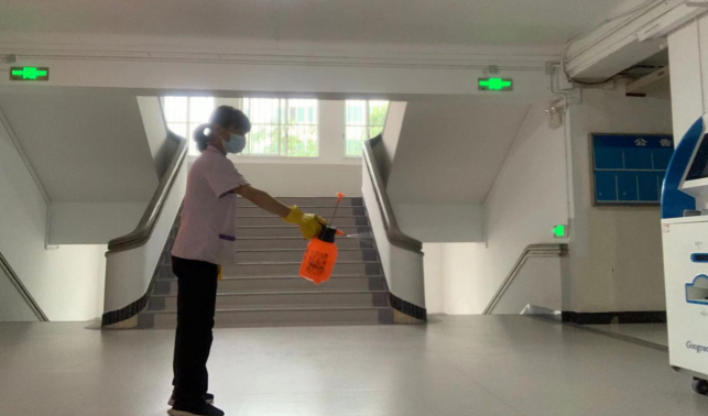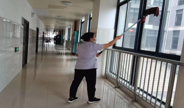 对公共教学楼宇的楼梯、走廊、门把手、课桌椅、电脑键盘、鼠标、水龙头、楼梯扶手、电梯间及按钮等高频接触表面进行重点杀菌消毒926次。