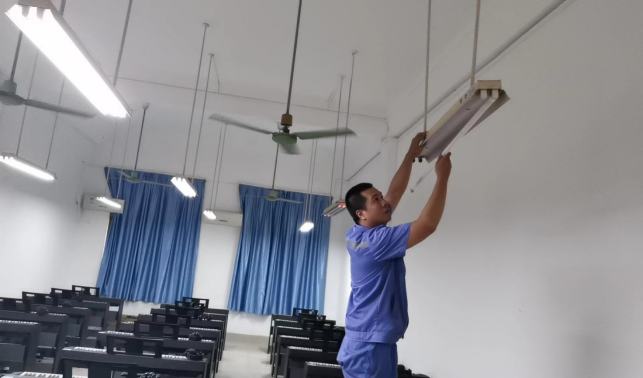 本周协助继续教育学院做好2023年下半年全国中小学教师资格证考试;协助物理学院做好2023年中学生物理竞赛考试各项工作。检查调试考试供电、灯光、风扇(空调)等设备,做好教室的开放管理、保洁卫生、防疫消杀等保障工作。