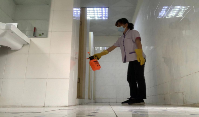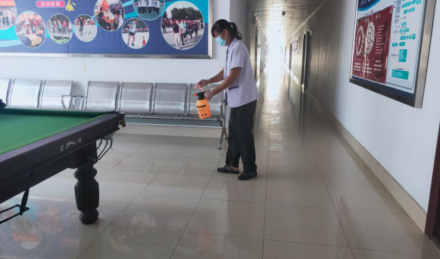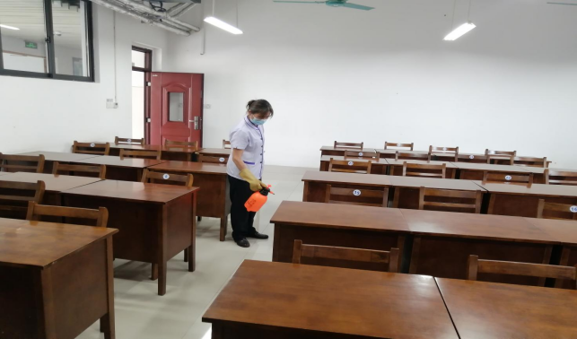 对公共教学楼宇的楼梯、走廊、门把手、课桌椅、电脑键盘、鼠标、水龙头、楼梯扶手、电梯间及按钮等高频接触表面进行重点杀菌消毒786处。