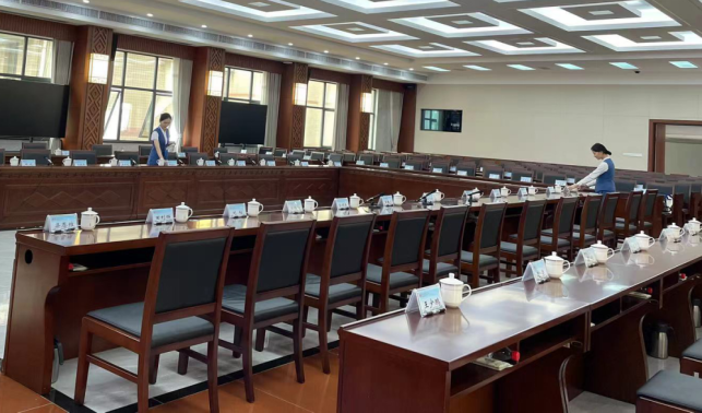 本周做好会场布置、会前、会后保洁及会务各项服务共计40场,其中重要接待26场。