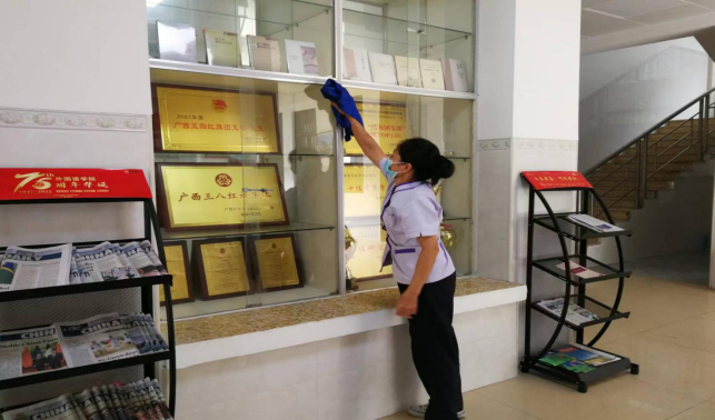 对校办楼、君武馆、新东园勤恳楼(后勤)、财务处、办公楼、大学生活动中心、保卫处等办公楼宇进行日常卫生保洁等工作。