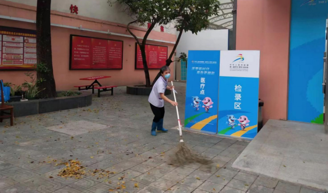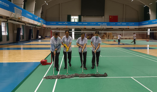 做好第一届学青会场馆卫生保障工作,加强东体育馆、体育学院日常卫生保洁。
