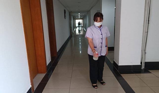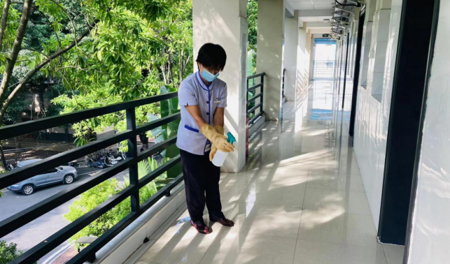 对公共教学楼宇的楼梯、走廊、门把手、课桌椅、电脑键盘、鼠标、水龙头、楼梯扶手、电梯间及按钮等高频接触表面进行重点杀菌消毒836次。