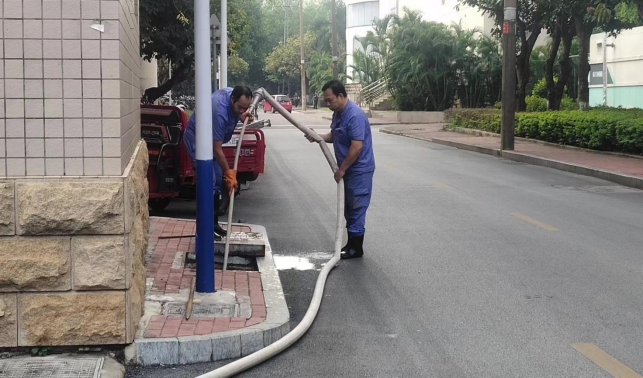 清理网球中心楼宇外围排水设施内杂物和杂草