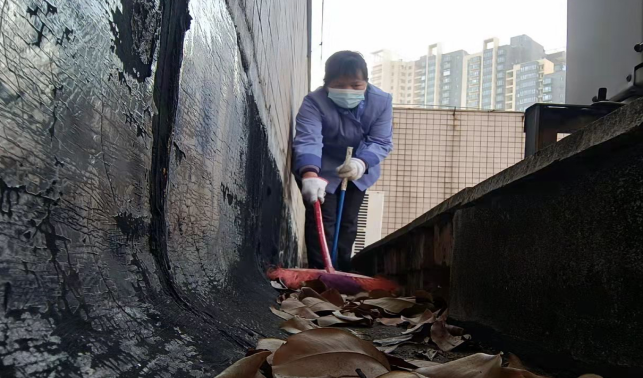 清理脑智能研究中心楼宇外围排水设施内杂物