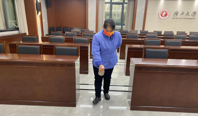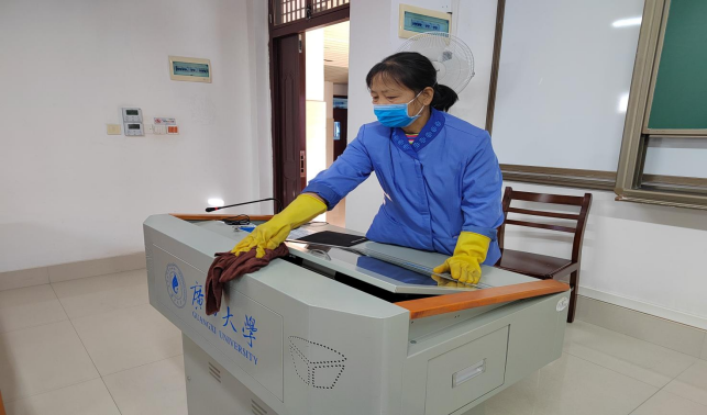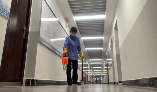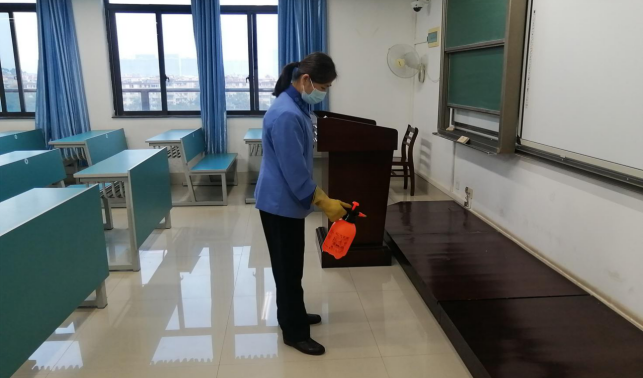 对公共教学楼宇的楼梯、走廊、门把手、课桌椅、电脑键盘、鼠标、水龙头、楼梯扶手、电梯间及按钮等高频接触表面进行重点杀菌消毒882次。