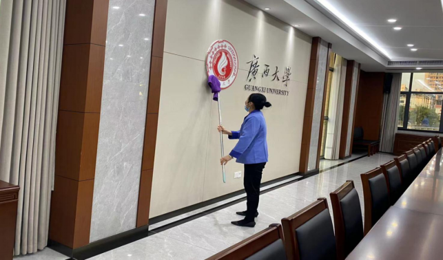 对君武馆、财务处、办公楼、大学生活动中心、保卫处等办公楼宇进行日常卫生保洁等服务工作。