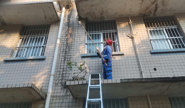 对语言中心、二教、三教、六教、十教、十一教、研究生院和行健学院教室等教学楼宇进行日常卫生保洁服务工作,本周清理公共楼宇排水设施34次,清理公共楼宇天台32处。