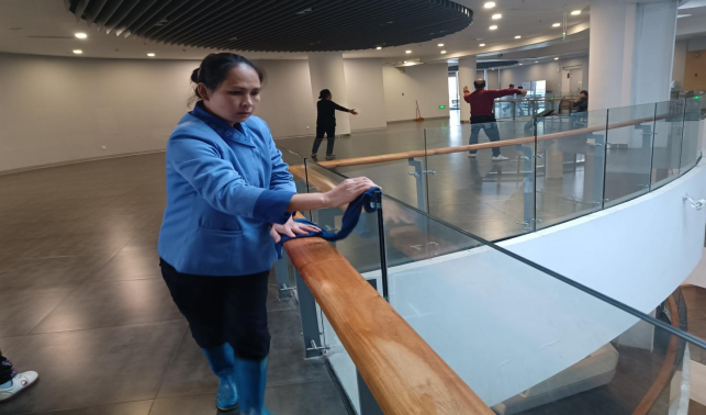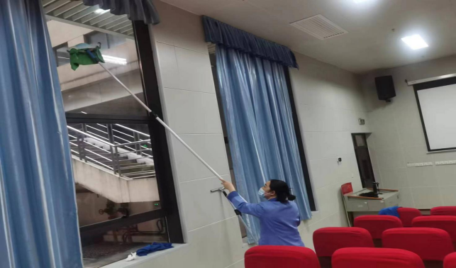 对君武馆、财务处、办公楼、大学生活动中心、保卫处等办公楼宇进行日常卫生保洁等服务工作。