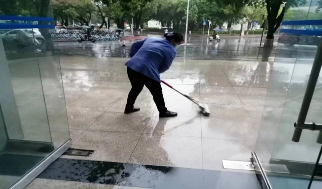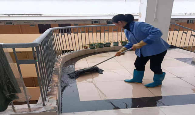 雨天清理实训楼积水