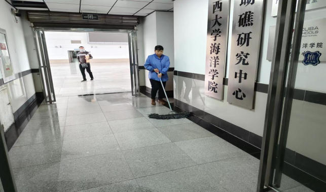 对土木学院、海洋学院、物理学院、资环材学院、国际学院等26个学院进行日常卫生保洁工作。