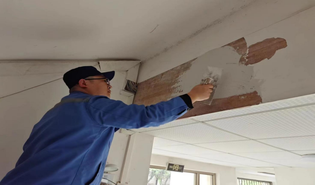 修补校办墙面