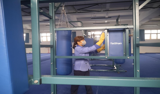 对东校园、西校园体育场馆进行日常卫生保洁工作。