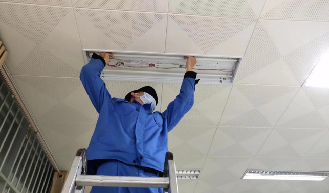 维修十教教室内照明灯