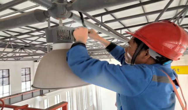 更换机械学院铸造车间罩灯
