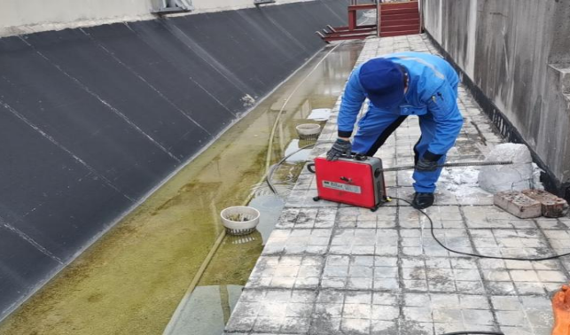疏通综合楼楼顶排水管堵塞