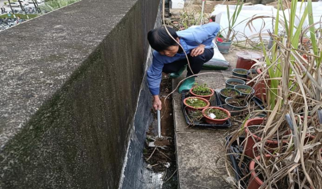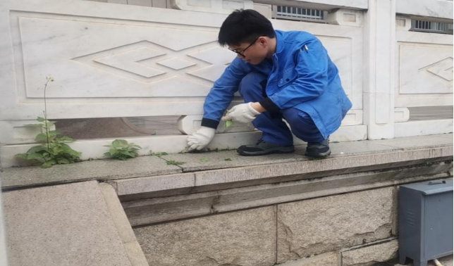清理综合楼海洋馆外围杂草绿植