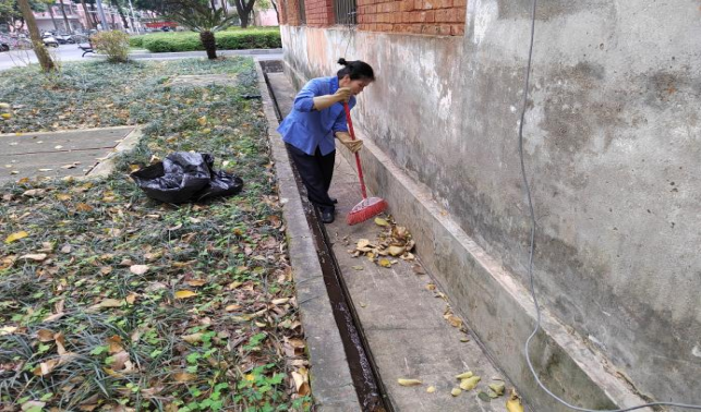 清理环境学院楼宇外围排水设施
