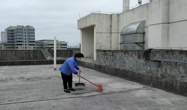 清理农学院楼宇天台排水设施