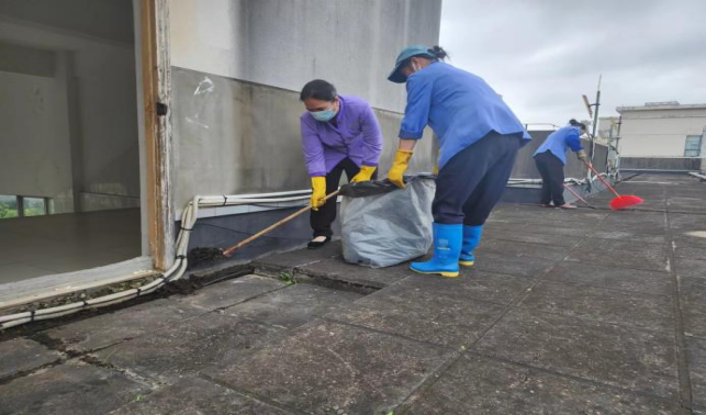 清理六教楼宇天台排水设施