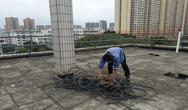 清理研究生院天台废弃网线