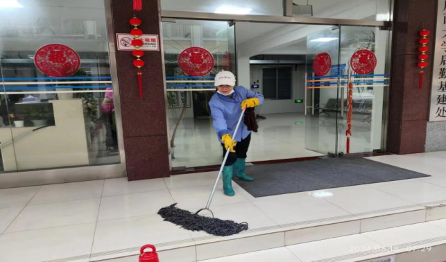 对君武馆、财务处、办公楼、大学生活动中心、保卫处等办公楼宇进行日常卫生保洁等服务工作。
