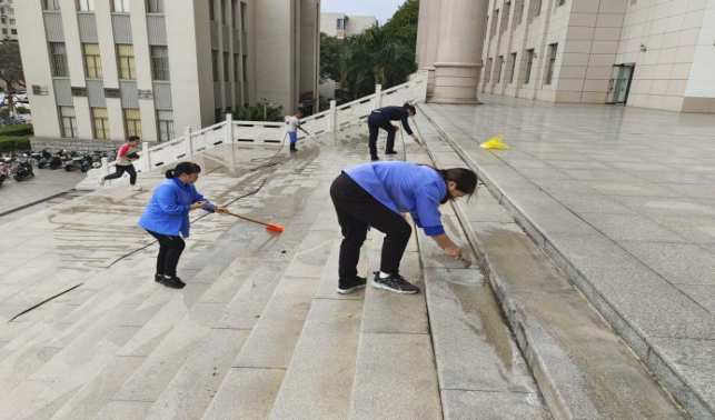 清理综合楼台阶污垢