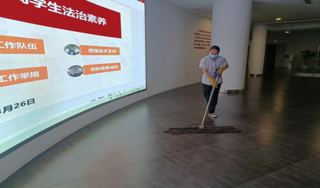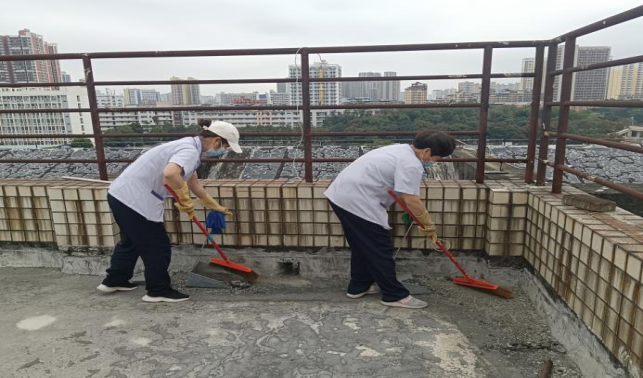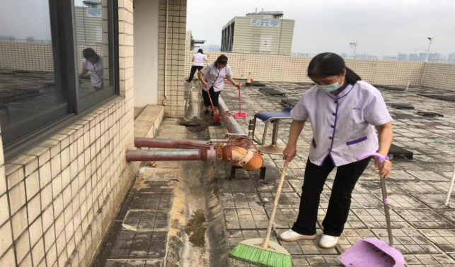 对语言中心、二教、三教、六教、十教、十一教、研究生院和行健学院教室等教学楼宇进行日常卫生保洁服务工作,本周清理公共楼宇排水设施47次,清理公共楼宇天台37处。